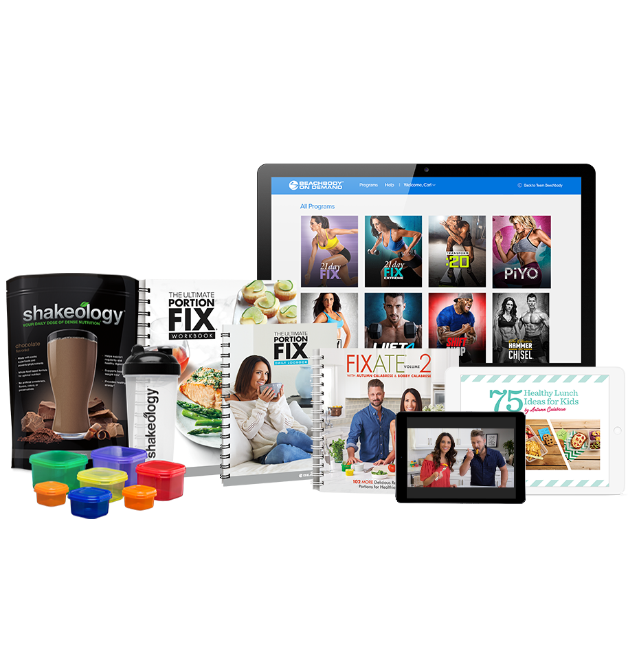Get ultimate weight-loss results with the Ultimate Portion Fix & BOD® Shakeology Challenge Pack! You get the Ultimate Portion Fix program, Shakeology, an annual Beachbody® On Demand membership, access to support from a personal Coach, and the first 30 days of an ongoing subscription to The Monthly Fix™. Plus, receive BONUS 21 Day Fix® and 21 Day Fix EXTREME® real-time workouts.