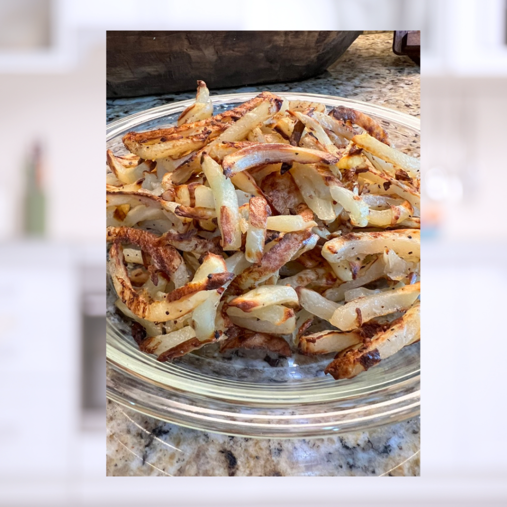 It’s no secret that I love french fries!!! I have found a healthy way to make them at home and it’s super easy. Gone are the days of heating up that Fry Daddy grease!! ENJOY!