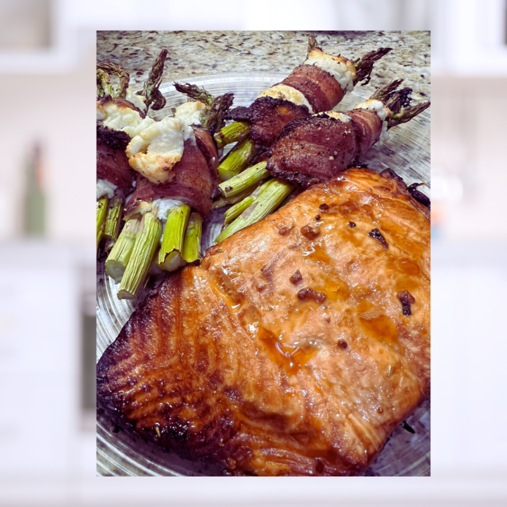 This recipe was given to me by my favorite aunt. I usually marinate the salmon in the morning, so it is super flavorful to cook for dinner. My aunt grills her salmon on a cedar plank. I find it easier to bake in the oven @ 425 degrees for about 20 minutes. ENJOY!