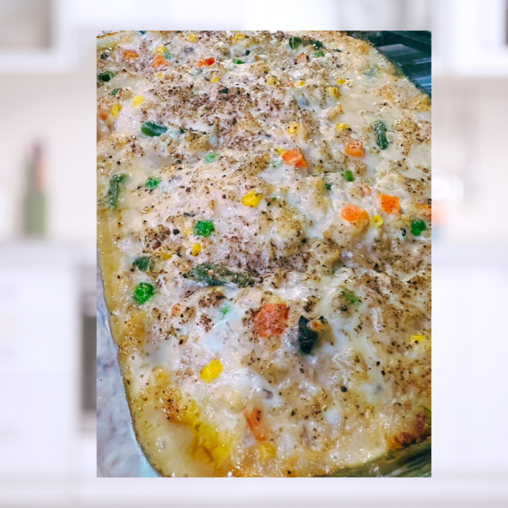 Making chicken pot pie a little more calorie friendly by ditching the pie crust! It’s so good you won’t even miss it…I PROMISE YOU. ENJOY!