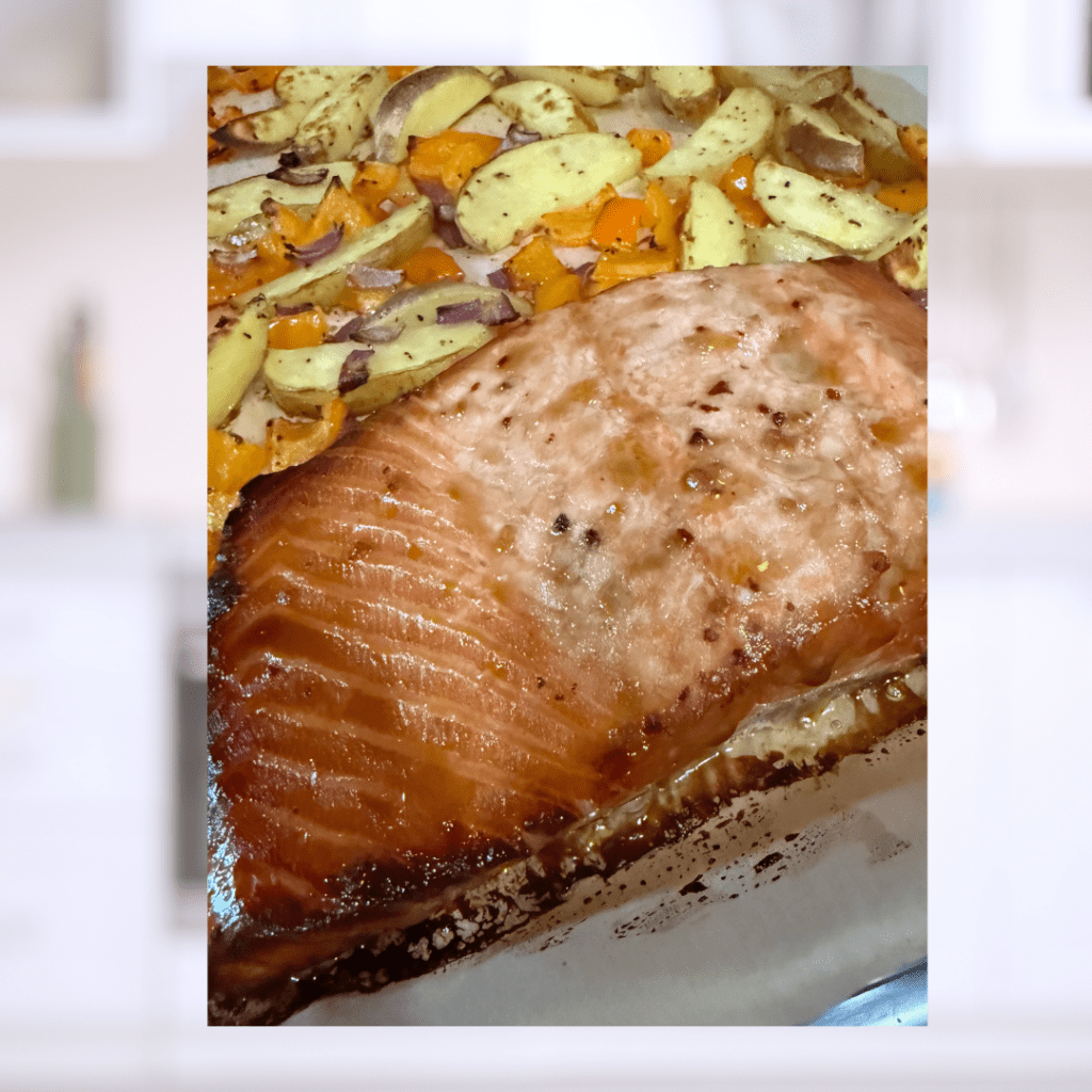 I love a sweet and savory marinade – if you do too, you will LOVE this one. I usually marinate the salmon in the morning, so it is super flavorful to cook for dinner. You can grill the salmon on a cedar plank or bake in the oven for an easy weeknight dinner (bake @ 425 degrees for about 20 minutes). ENJOY!